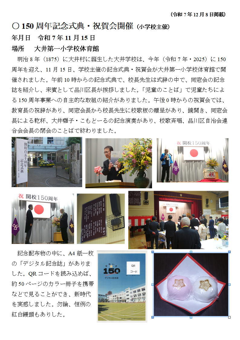 ○大井第一小学校開校150周年記念同窓会のご報告 (令和7年12月20日掲載)