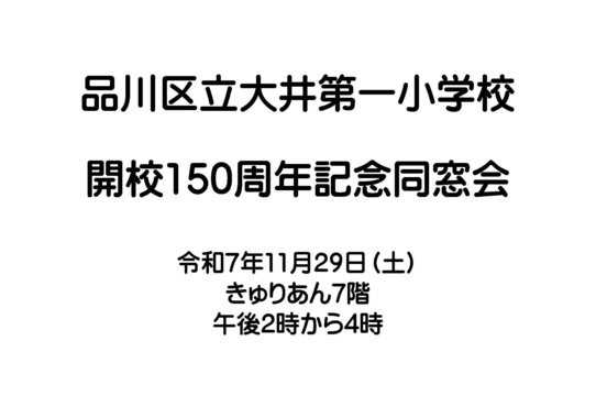 「大井第一小学校開校150周年記念同窓会」の御案内