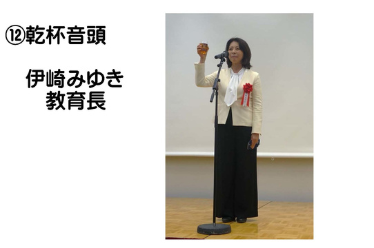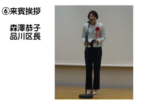 大野同窓会会長の開会挨拶に続き、森澤品川区長、𠮷川校長より温かいお祝辞を頂き、伊崎教育長には乾杯の音頭をおとり頂きました。