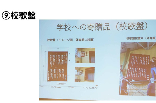 同窓会では学校への記念品として、校歌板を寄贈することにしました。