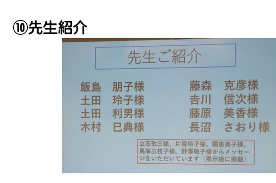 お越しいただいた元先生方のご紹介、5月24日のタイムカプセル開封式の様子(ビデオ)平成9年(1997)年度卒業生で現在、ロックバンドBase Ball Bearで活躍されている堀之内大介氏からの応援ビデオなどが上映されました。
