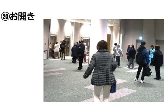 ②会場はエレベータ、多目的トイレがあります。高齢の方、身体の不自由な方も